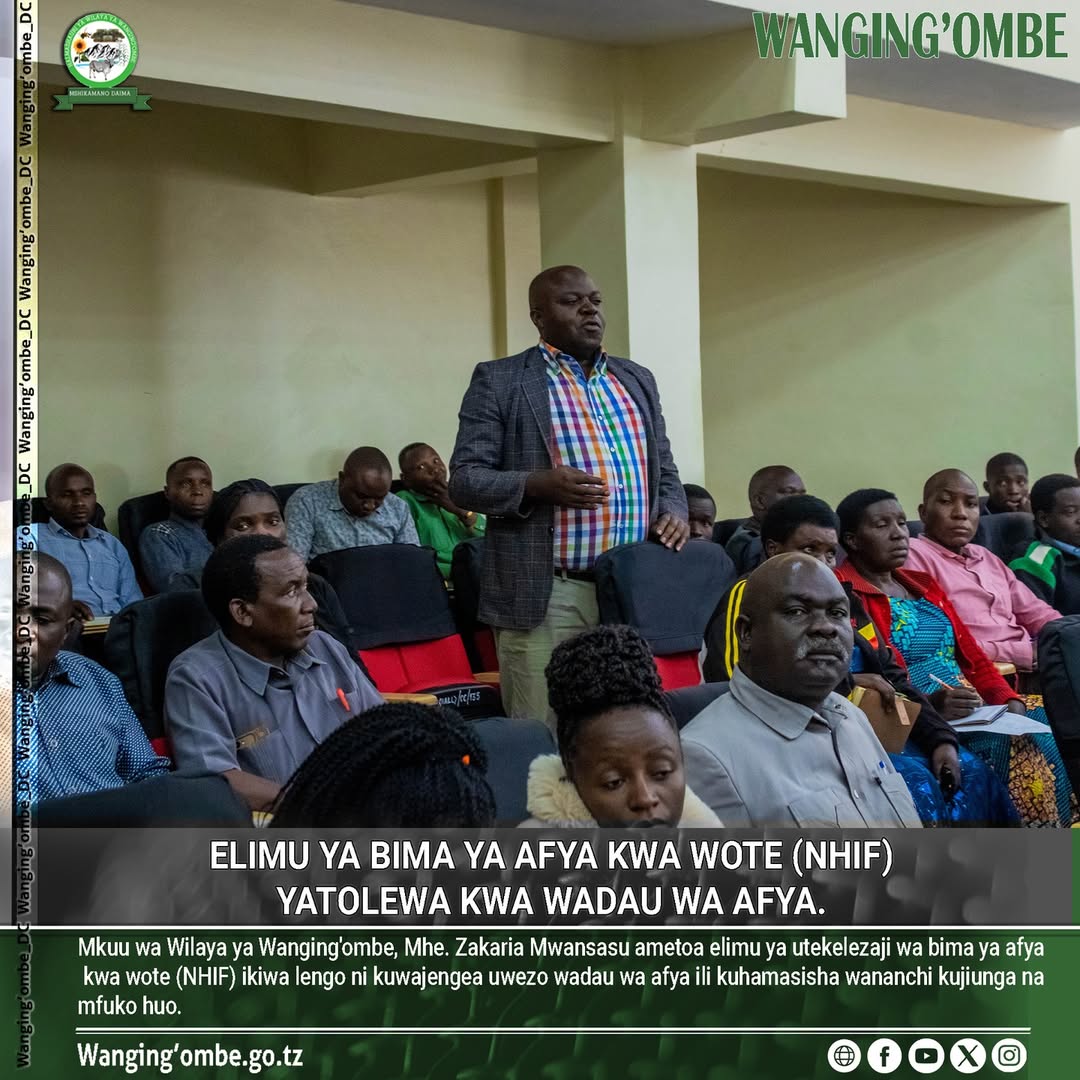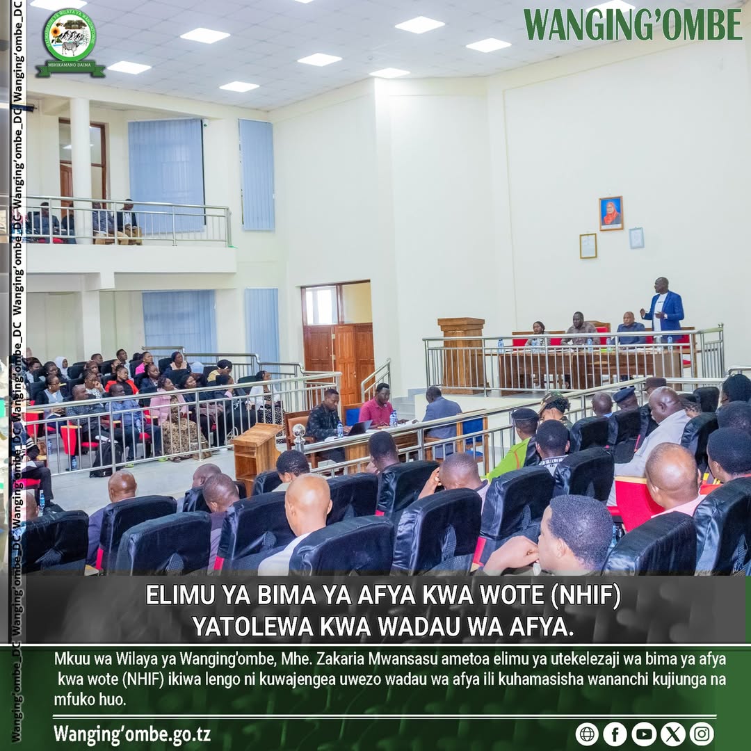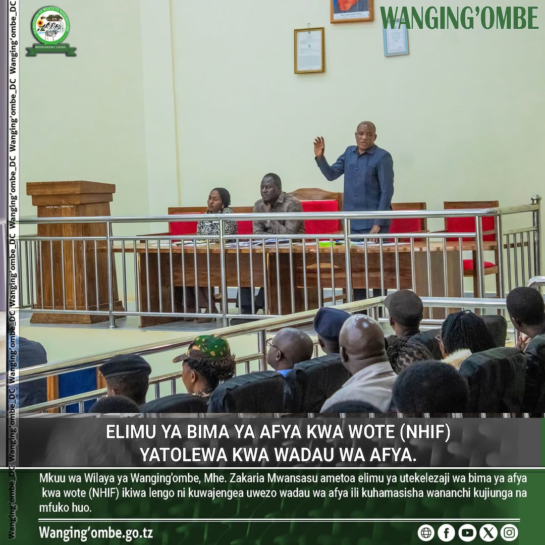 MKUU wa wilaya ya Wanging'ombe, Mhe. Zakaria Mwansasu ametoa elimu ya utekelezaji wa bima ya afya kwa wote (NHIF) ikiwa lengo ni kuwajengea uwezo wadau wa afya ili kuhamasisha wananchi kujiunga na mfuko huo.