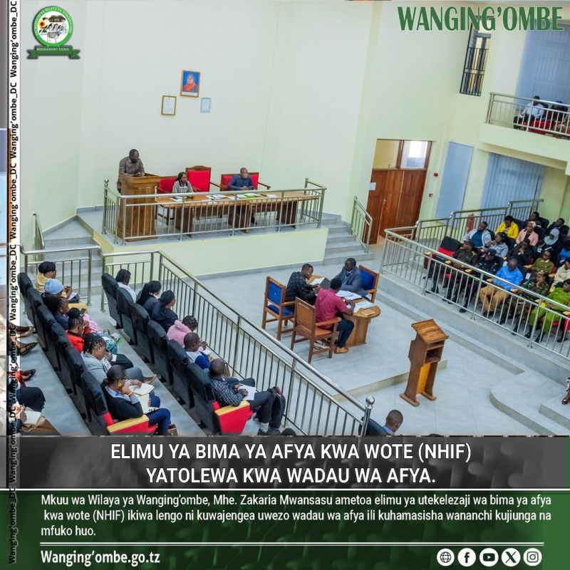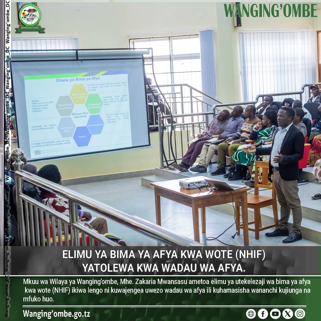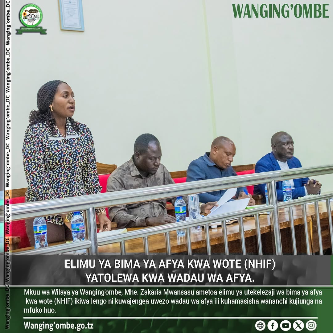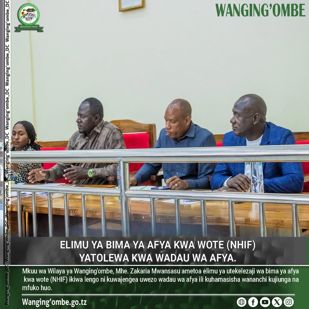MKUU wa wilaya ya Wanging'ombe, Mhe. Zakaria Mwansasu ametoa elimu ya utekelezaji wa bima ya afya kwa wote (NHIF) ikiwa lengo ni kuwajengea uwezo wadau wa afya ili kuhamasisha wananchi kujiunga na mfuko huo.