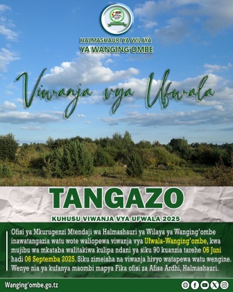 TANGAZO KUHUSU VIWANJA VYA UFWALA - WANGING'OMBE 2025.
