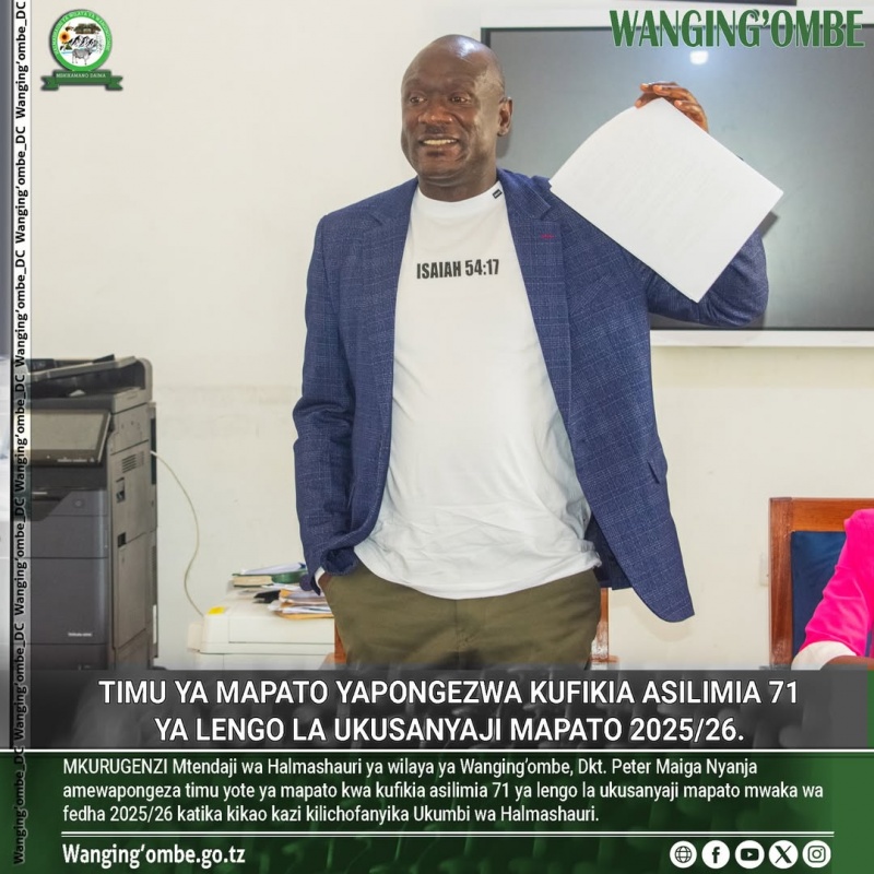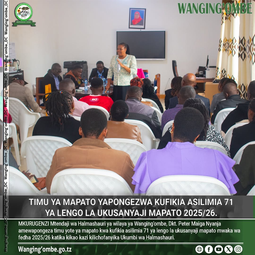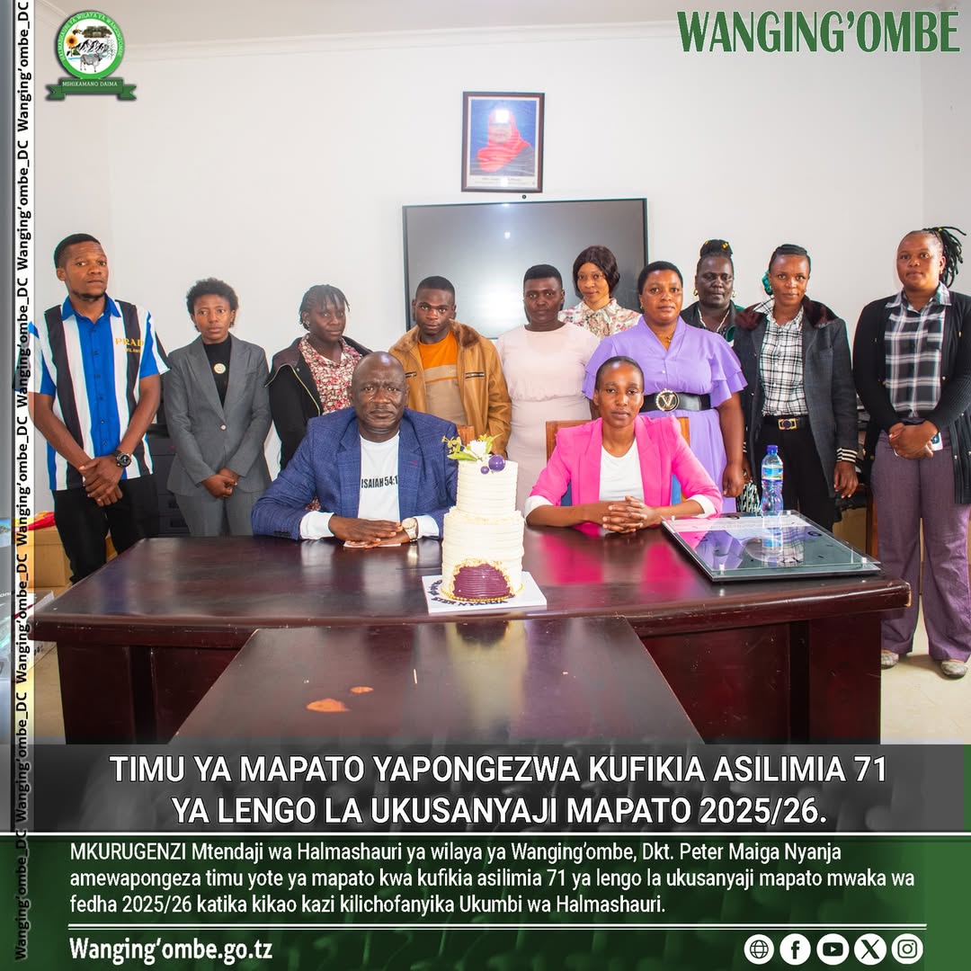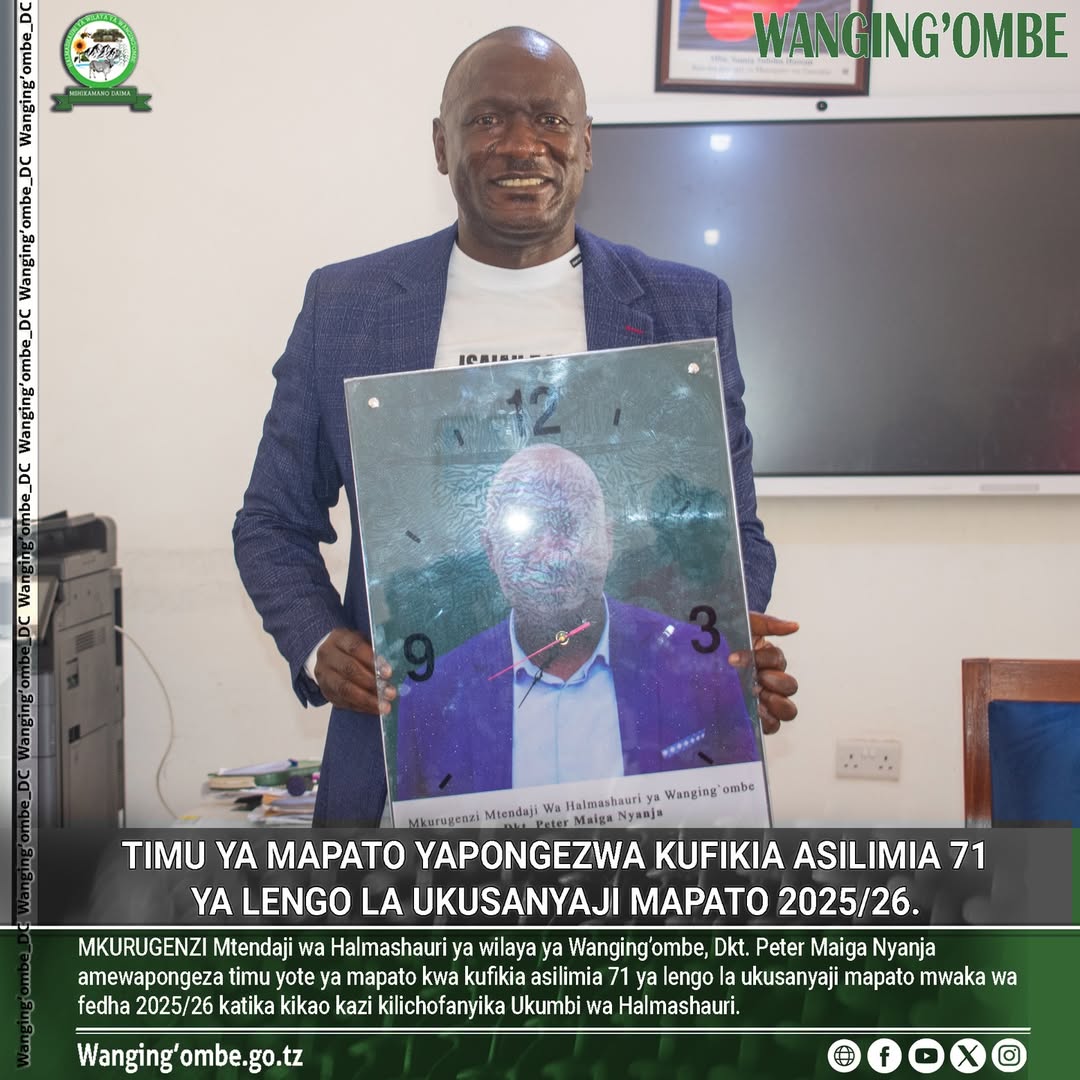 MKURUGENZI Mtendaji wa Halmashauri ya wilaya ya Wanging’ombe, Dkt. Peter Maiga Nyanja amewapongeza timu yote ya mapato kwa kufikia asilimia 71 ya lengo la ukusanyaji mapato mwaka wa fedha 2025/26 katika kikao kazi kilichofanyika Ukumbi wa Halmashauri.
