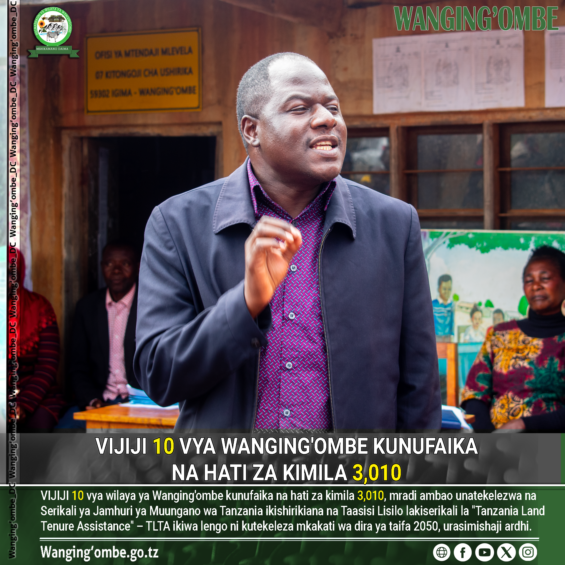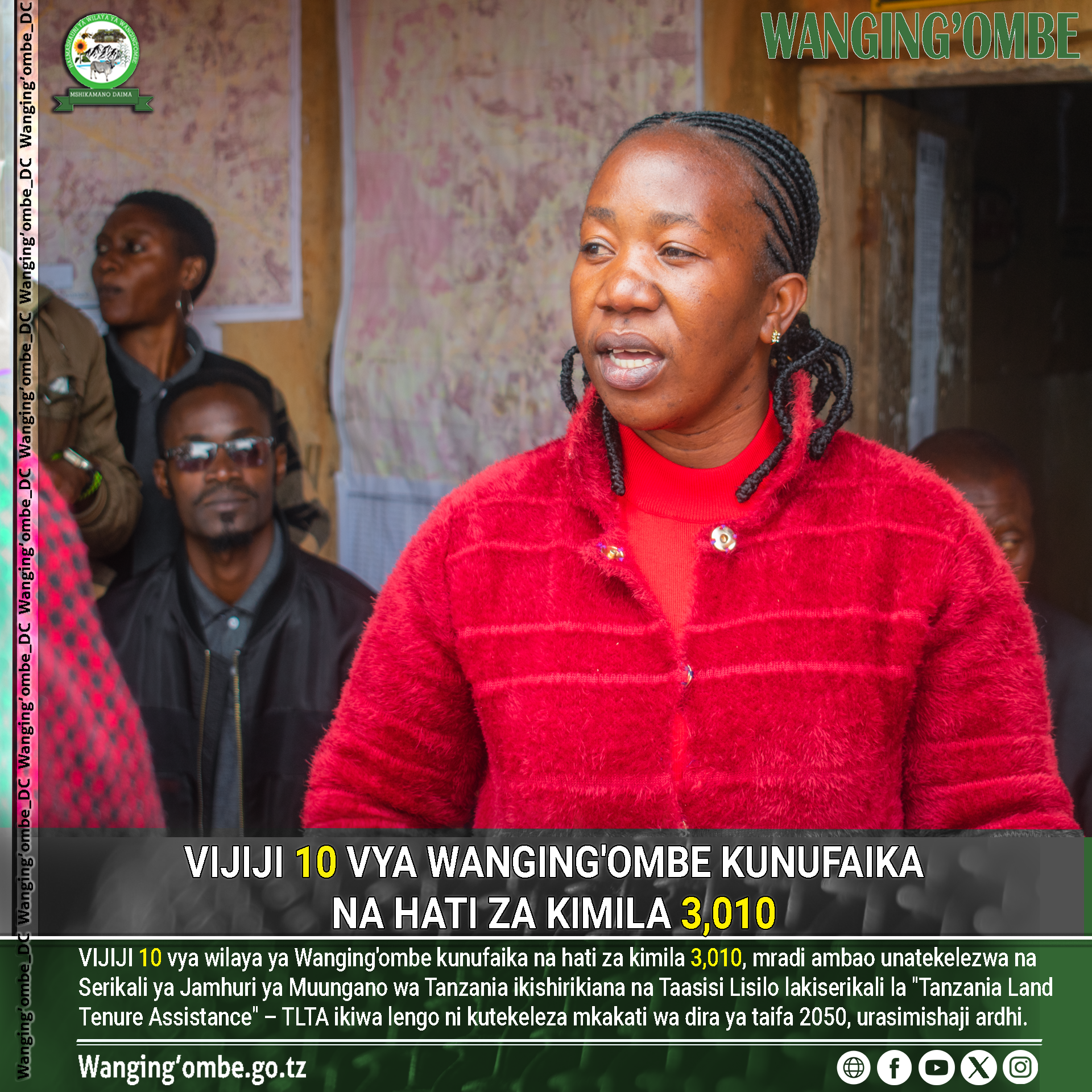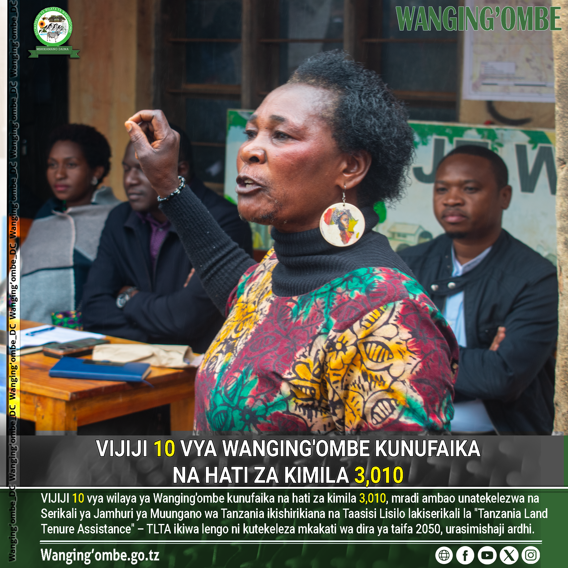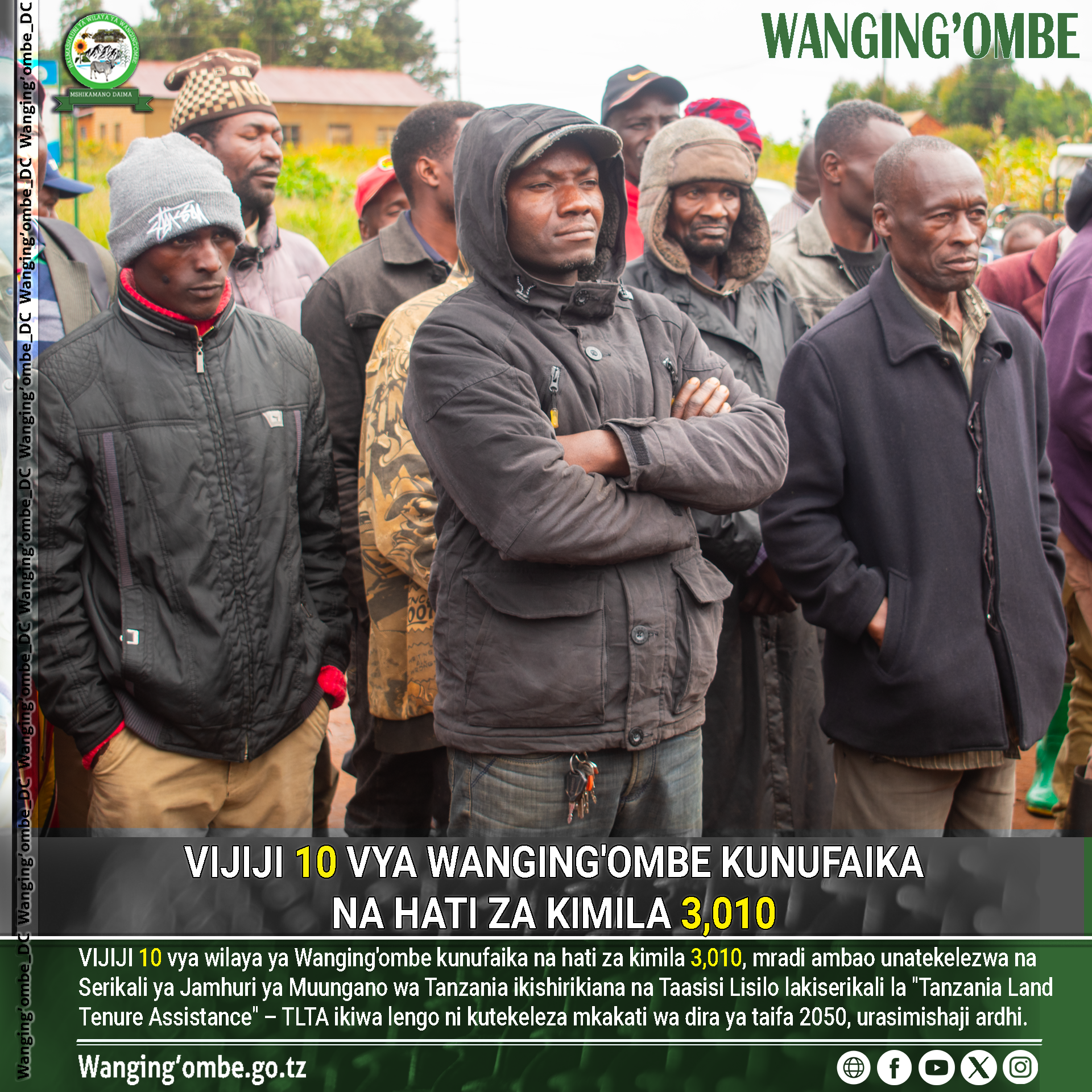 VIJIJI 10 vya wilaya ya Wanging'ombe kunufaika na hati za kimila 3,010, mradi ambao unatekelezwa na Serikali ya Jamhuri ya Muungano wa Tanzania ikishirikiana na Taasisi Lisilo lakiserikali la "Tanzania Land Tenure Assistance" – TLTA ikiwa lengo ni kutekeleza mkakati wa dira ya taifa wa kurasimisha ardhi yote ifikapo 2050.