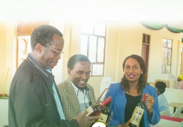 MKUU wa wilaya ya Wanging'ombe, Mhe. Zakaria Mwansasu (Kushoto pichani) akiendelea na vipimo vya hali ya Lishe katika banda la maonyesho ya Kilimo, Ufugaji, Upimaji wa Afya na Lishe, Ujasiriamali la w...