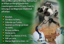 OFISI ya Mkurugenzi Mtendaji, Halmashauri ya Wilaya ya Wanging'ombe inawatangazia wananchi wote Zoezi la Uchunguzi wa Magonjwa mbalimbali yafuatayo;