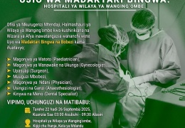 MKURUGENZI Mtendaji wa Halmashauri ya Wilaya ya Wanging'ombe kwa kushirikiana na Wizara ya Afya anawatangazia wananchi wote ujio wa Madaktari Bingwa na Bobezi kama ifuatavyo: